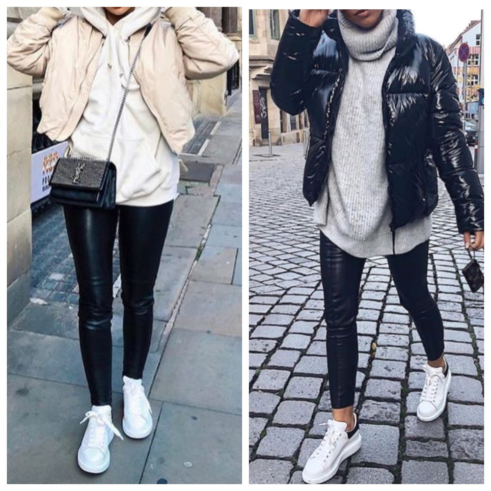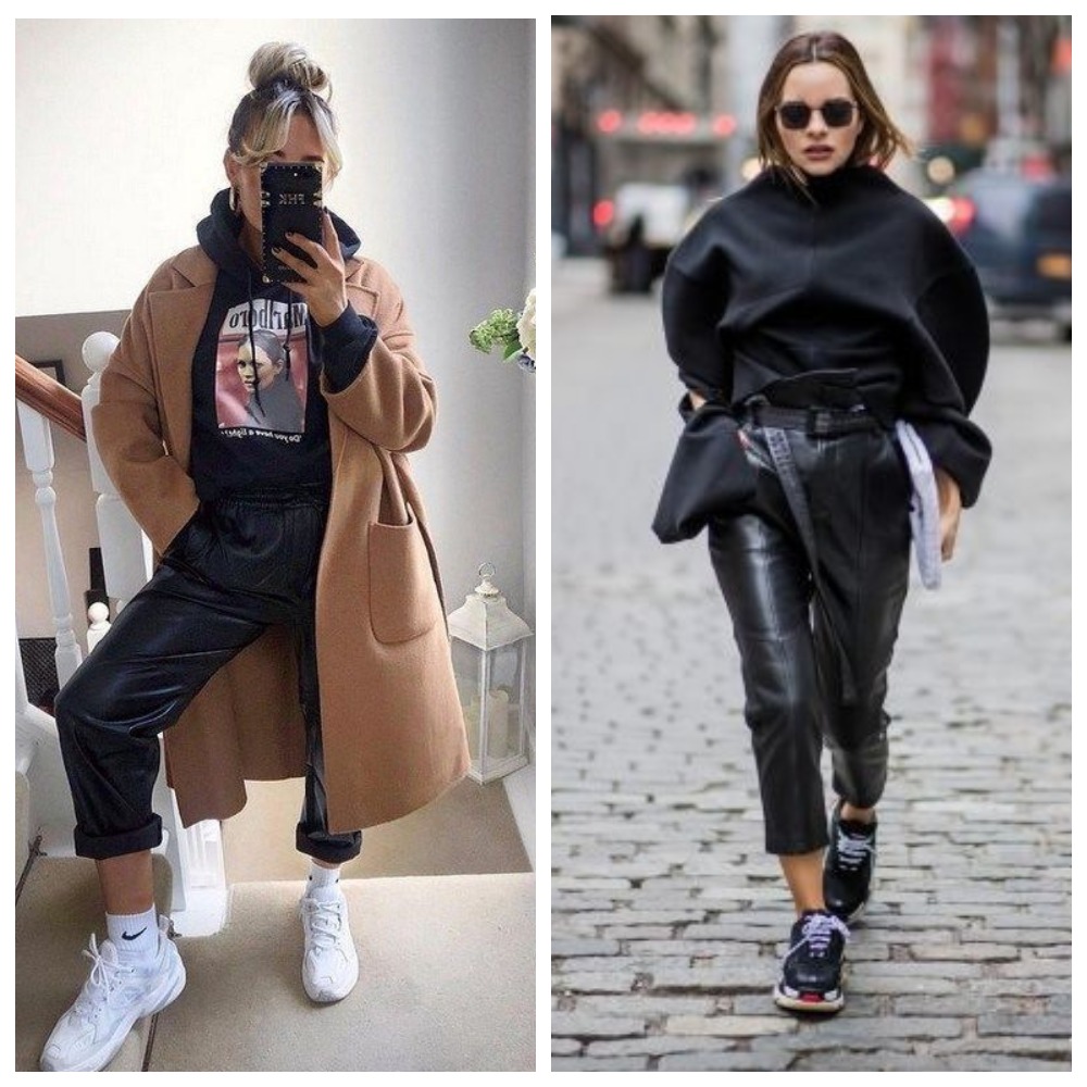 - Кожаные брюки бананы + кроссовки + свитер/худи