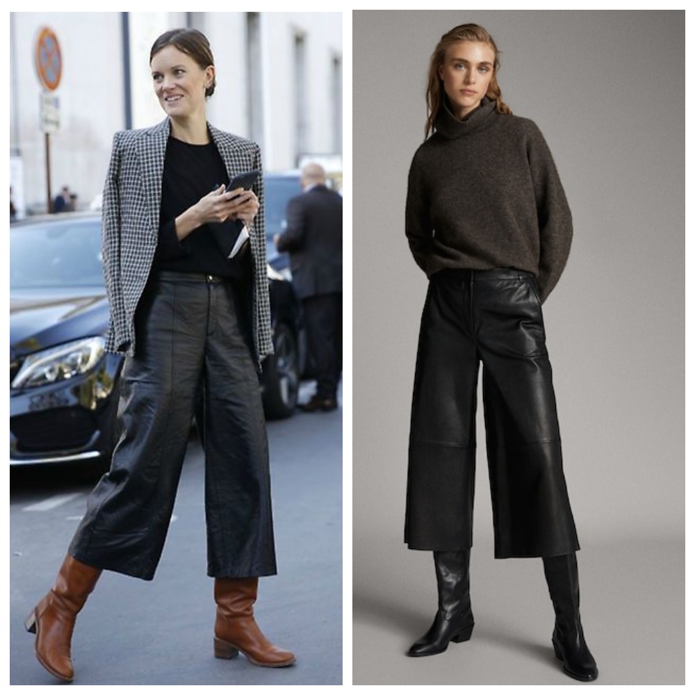 - Укороченные кожаные брюки + туфли
