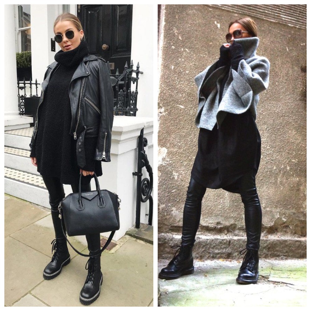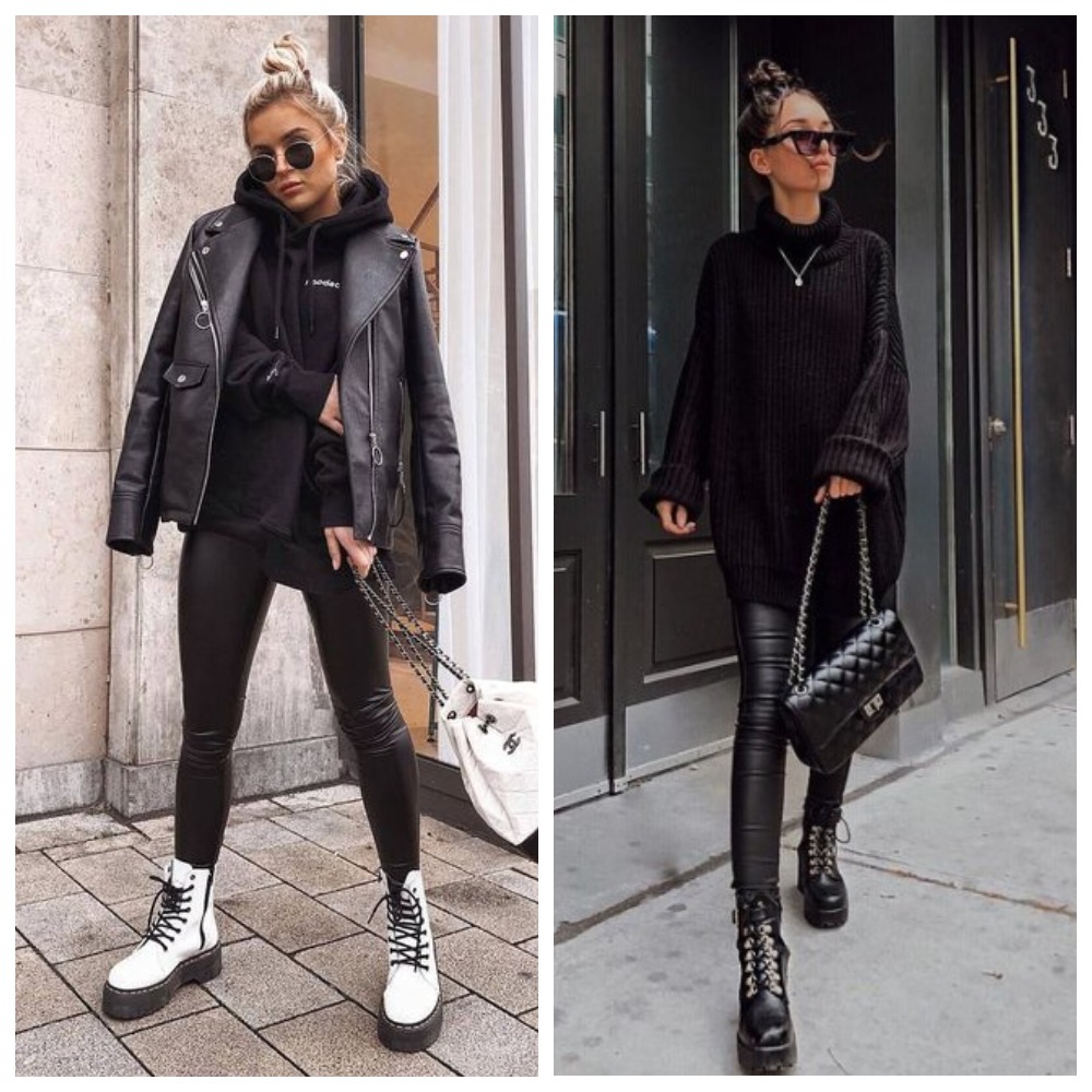 - Кожаные брюки-бананы + грубые ботинки